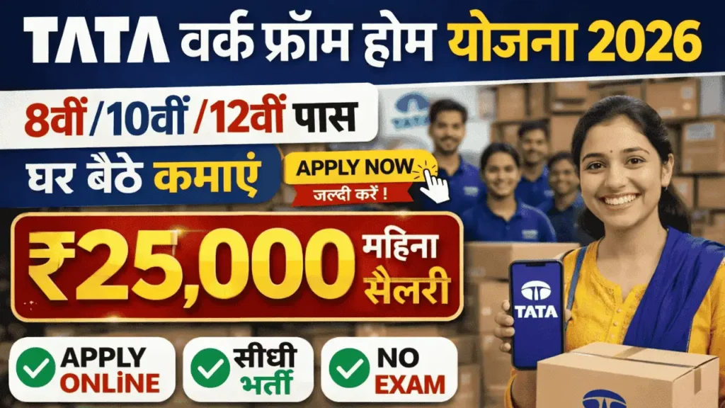 देश के युवाओं के बीच इन दिनों Tata TCS Work From Home Yojana 2026 को लेकर खबरें तेजी से वायरल हो रही हैं। दावा किया जा रहा है कि टाटा कंपनी 10वीं–12वीं पास युवाओं को घर बैठे काम दे रही है, जिसमें ₹35,000 तक सैलरी और 25,000 पदों पर भर्ती की बात कही जा रही है।